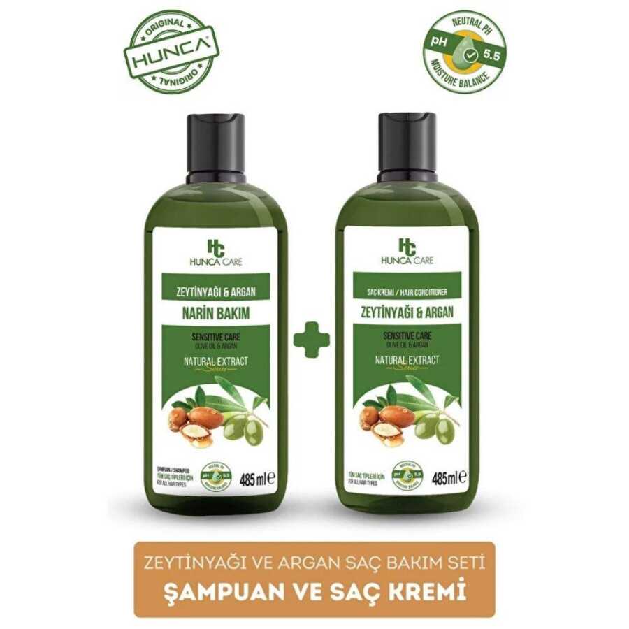 Hunca Care Zeytinyağlı ve Argan Yağlı Dökülme Karşıtı Saç Bakım Seti ( Şampuan 485 ml + Saç Kremi 485 ml)