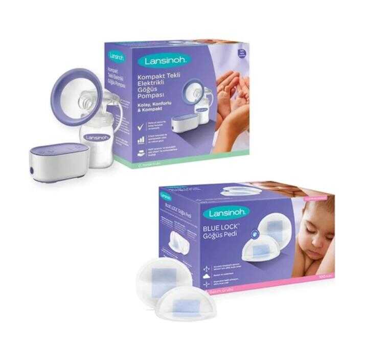 Lansinoh Tekli Elektrikli Göğüs Pompası & Blue Lock Göğüs Pedi 100 Adet Set