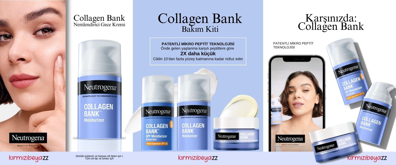 Neutrogena Collagen Bank Nemlendirici Gündüz Kremi SPF30, günlük kullanıma uygun hafif bir gündüz kremidir. Mikro peptit teknolojisi ile cildin sıkı ve esnek görünümünü destekler, SPF30 ile UVA/UVB ışınlarına karşı koruma sağlar. Tüm cilt tiplerine uygundur.
