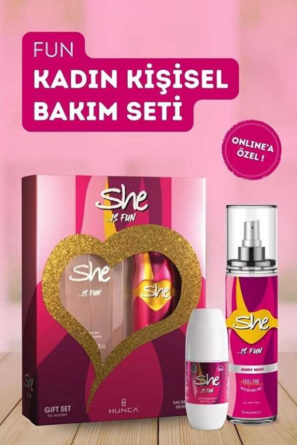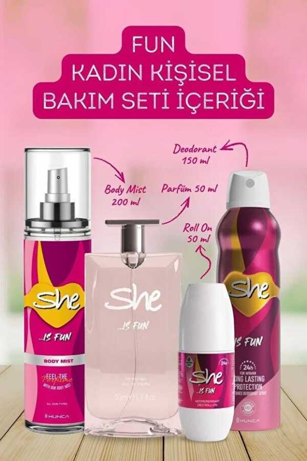 She Fun Kadın Kişisel Bakım Seti ( Parfüm + Body Mist + Deodorant + Roll On )