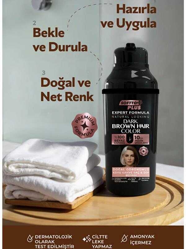 Softto Plus Expert Woman Koyu Kahve Kadınlara Özel Yeni Formül evde uygulamak isteyen kadınlar için özel geliştirilmiş formülü sayesinde renk saça eşit şekilde yayılır, yapay görünüm oluşturmaz ve saçın doğal parlaklığını korur.